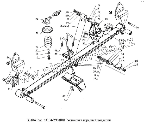 Каталог запасных частей к технике: ГАЗ-33104 Валдай Евро 3. Установка передней подвески