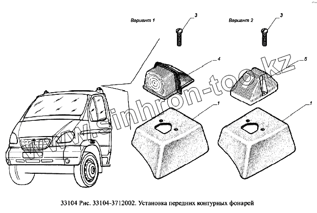 Каталог запасных частей к технике: ГАЗ-33104 Валдай Евро 3. Установка передних контурных фонарей