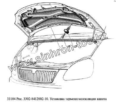 Каталог запасных частей к технике: ГАЗ-33104 Валдай Евро 3. Установка термошумоизоляции капота