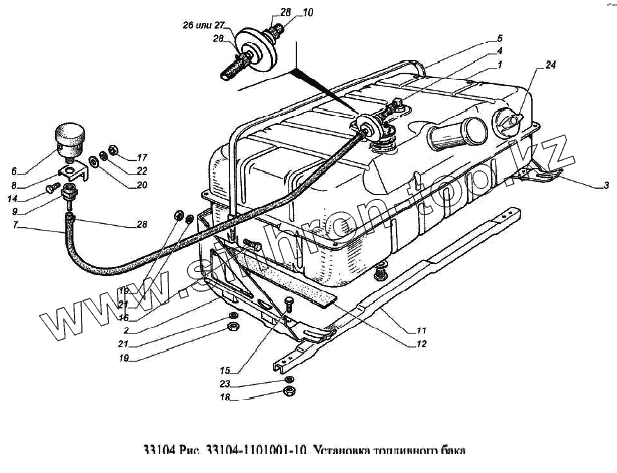 Каталог запасных частей к технике: ГАЗ-33104 Валдай Евро 3. Установка топливного бака
