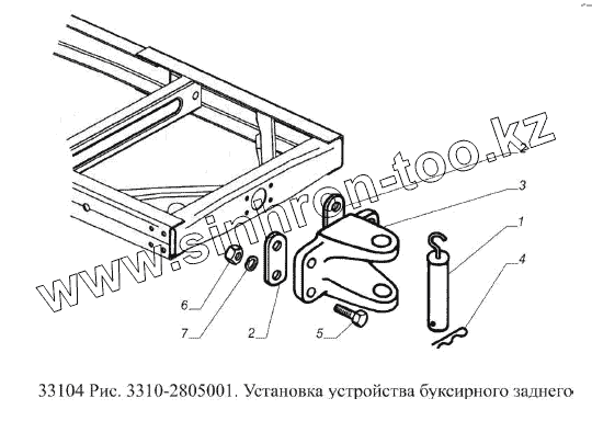 Каталог запасных частей к технике: ГАЗ-33104 Валдай Евро 3. Установка устройства буксирного заднего