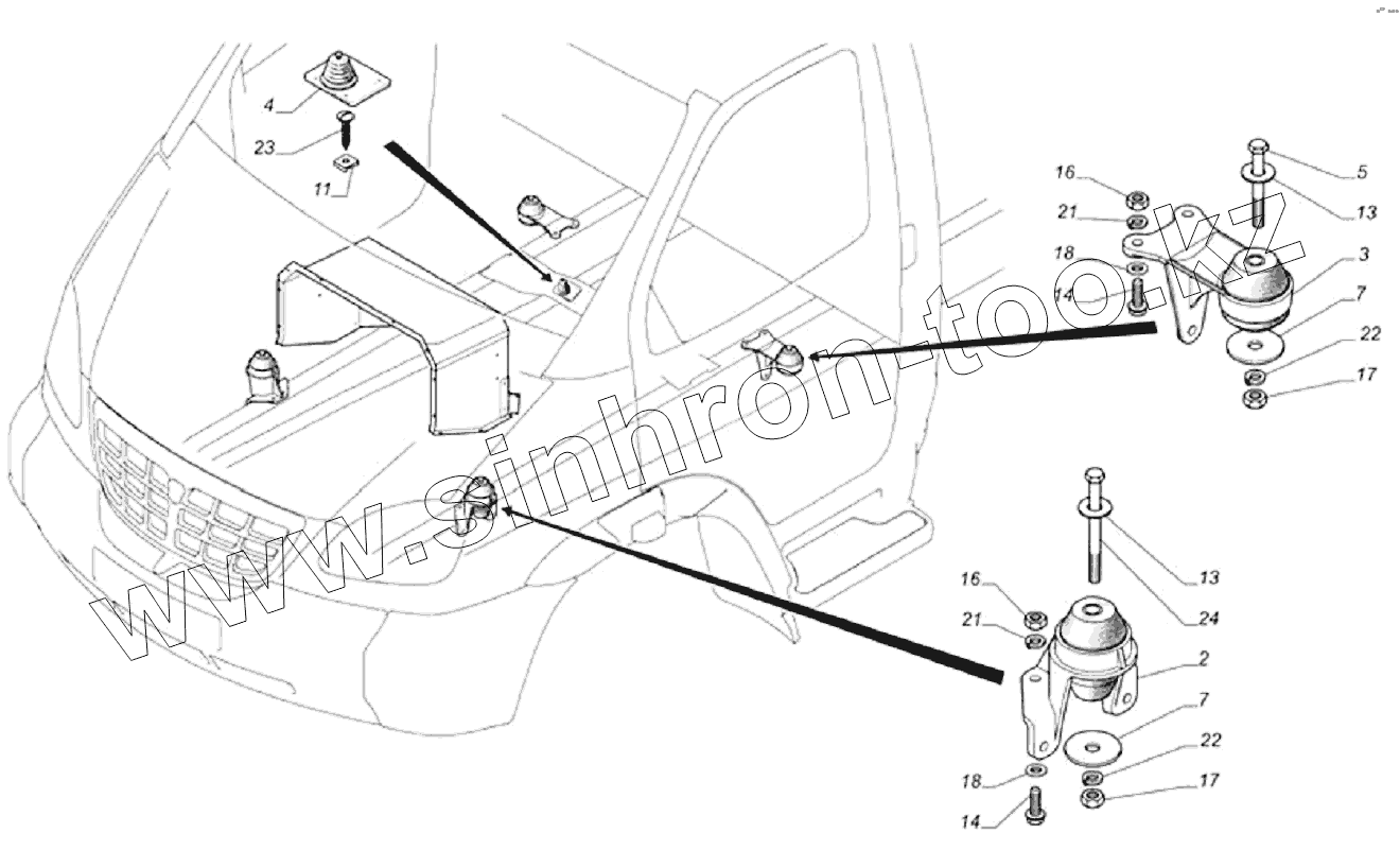 Каталог запасных частей к технике: ГАЗ-33106 Евро 3. Установка деталей кабины 33104-5000001