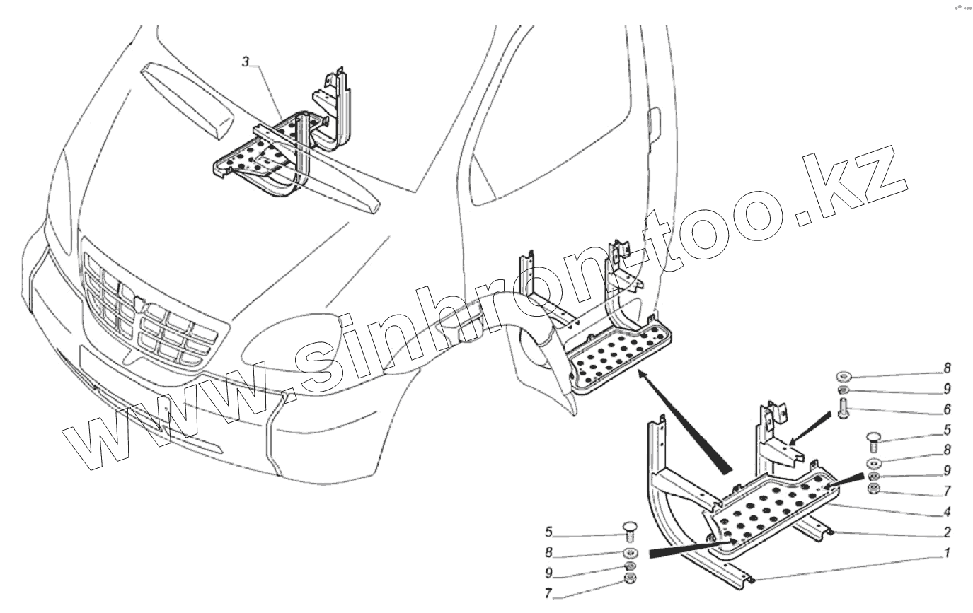 Каталог запасных частей к технике: ГАЗ-33106 Евро 3. Установка дополнительной подножки 3310-8405001