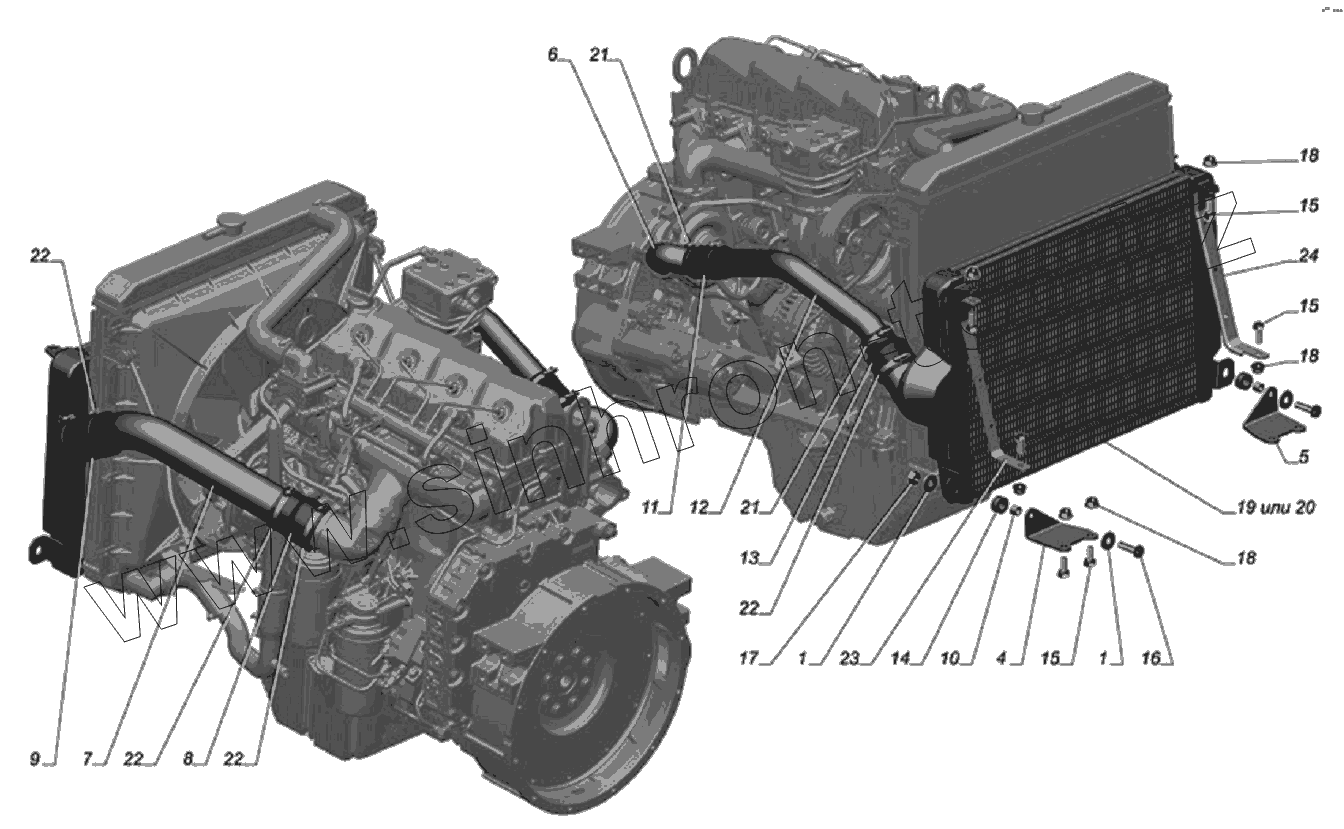 Установка системы охлаждения ГАЗ-33104 "Валдай" 33104-1300001