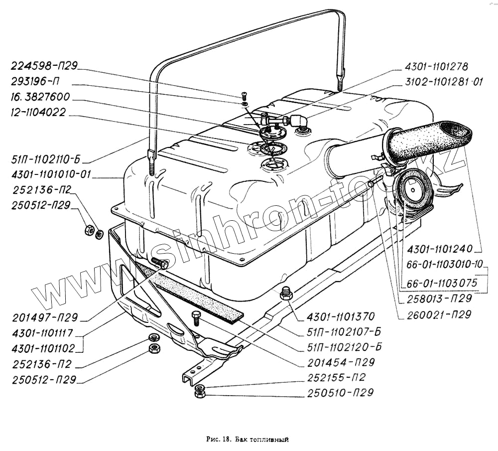 Каталог запасных частей к технике: ГАЗ-4301. Бак топливный