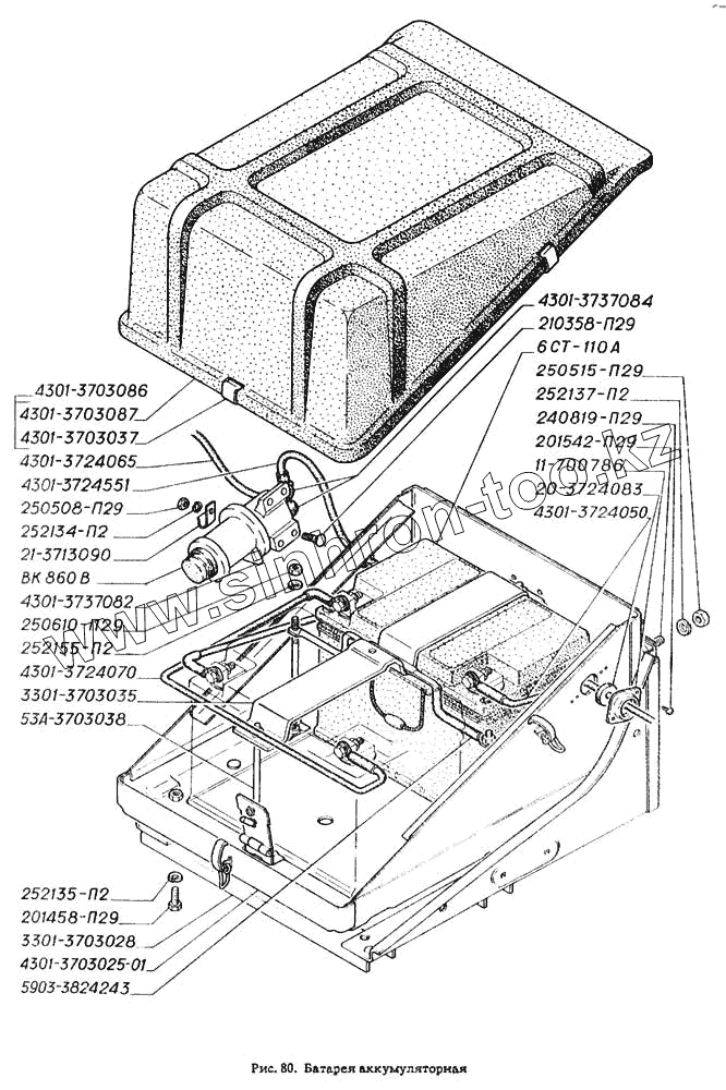 Каталог запасных частей к технике: ГАЗ-4301. Батарея аккумуляторная
