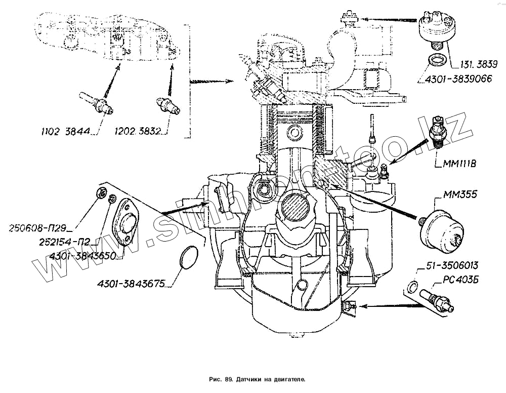 Каталог запасных частей к технике: ГАЗ-4301. Датчики на двигателе
