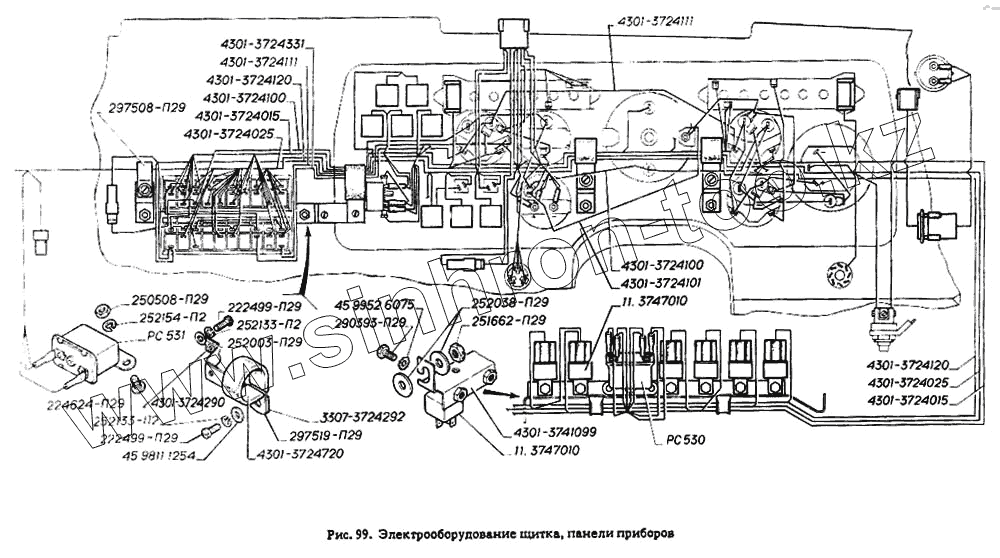 Каталог запасных частей к технике: ГАЗ-4301. Электрооборудование щитка, панели приборов
