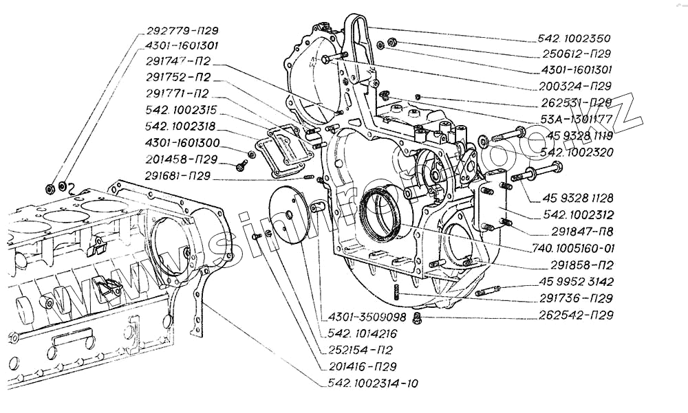 Каталог запасных частей к технике: ГАЗ-4301. Картер маховика