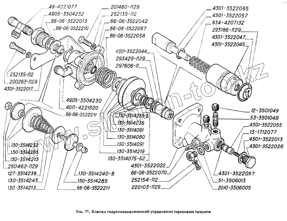 Каталог запасных частей к технике: ГАЗ-4301. Клапан гидропневматический управления тормозами прицепа