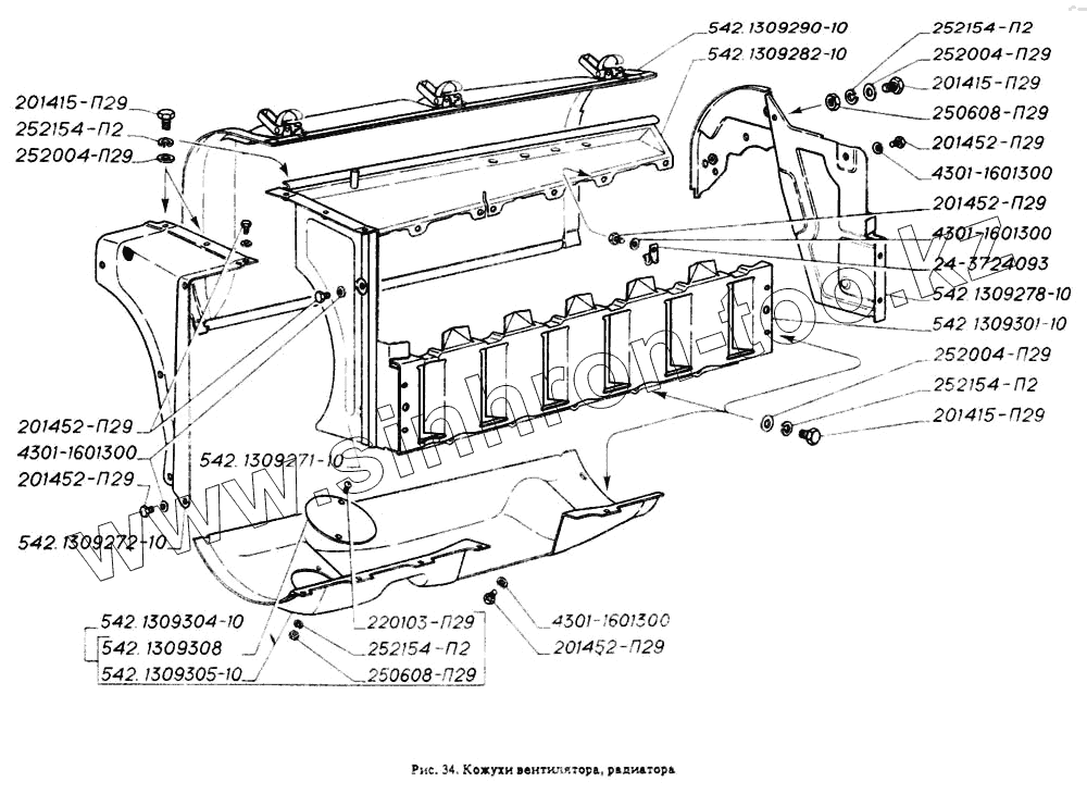 Каталог запасных частей к технике: ГАЗ-4301. Кожухи вентилятора, радиатора