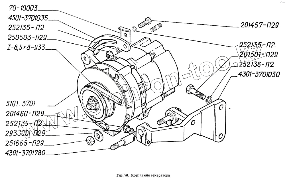 Каталог запасных частей к технике: ГАЗ-4301. Крепление генератора