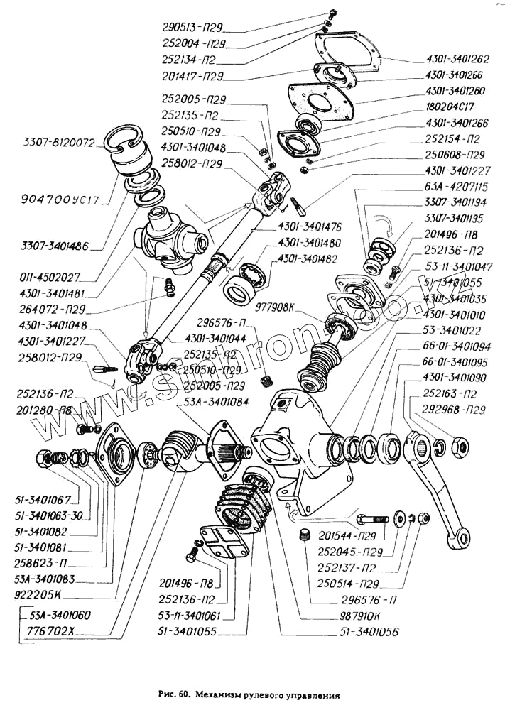 Каталог запасных частей к технике: ГАЗ-4301. Механизм рулевого управления