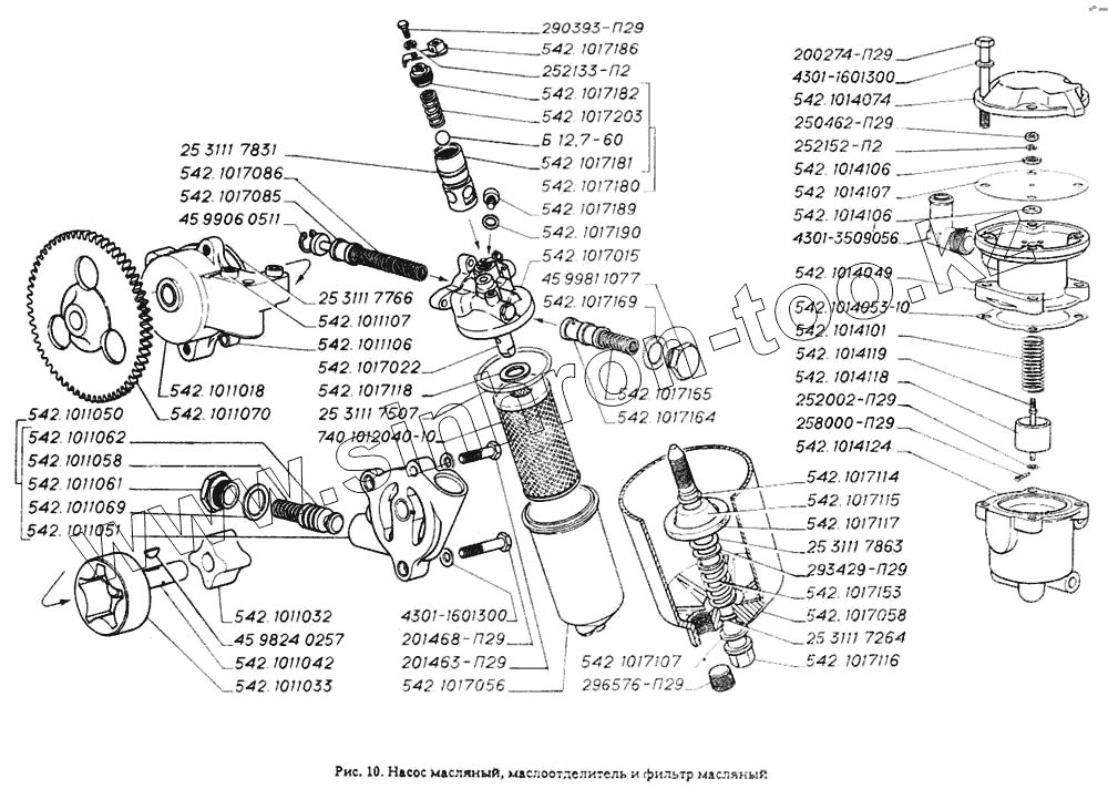 Каталог запасных частей к технике: ГАЗ-4301. Насос масляный, маслоотделитель и фильтр масляный