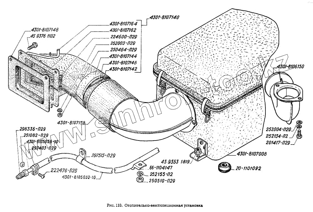 Каталог запасных частей к технике: ГАЗ-4301. Отопительно-вентиляционная система