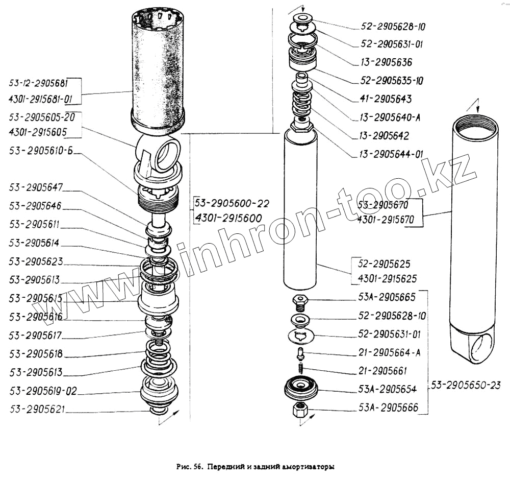 Каталог запасных частей к технике: ГАЗ-4301. Передний и задний амортизаторы