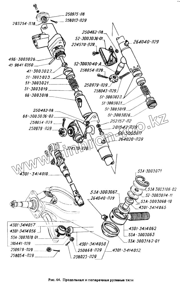 Каталог запасных частей к технике: ГАЗ-4301. Продольная и поперечная рулевые тяги