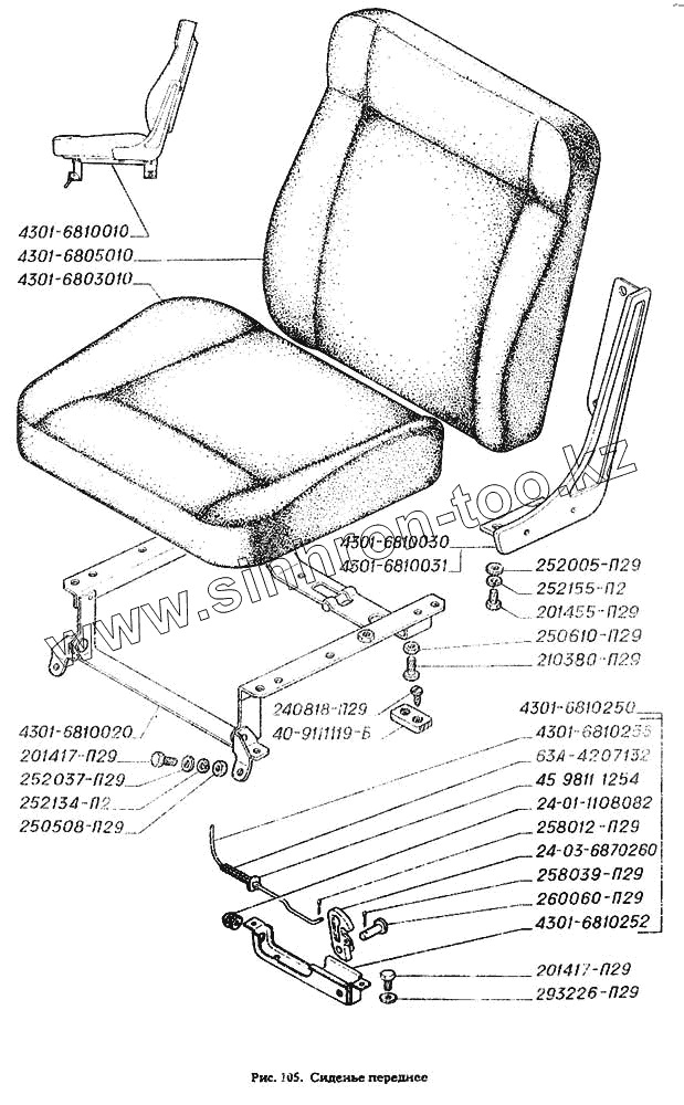 Каталог запасных частей к технике: ГАЗ-4301. Сиденье переднее