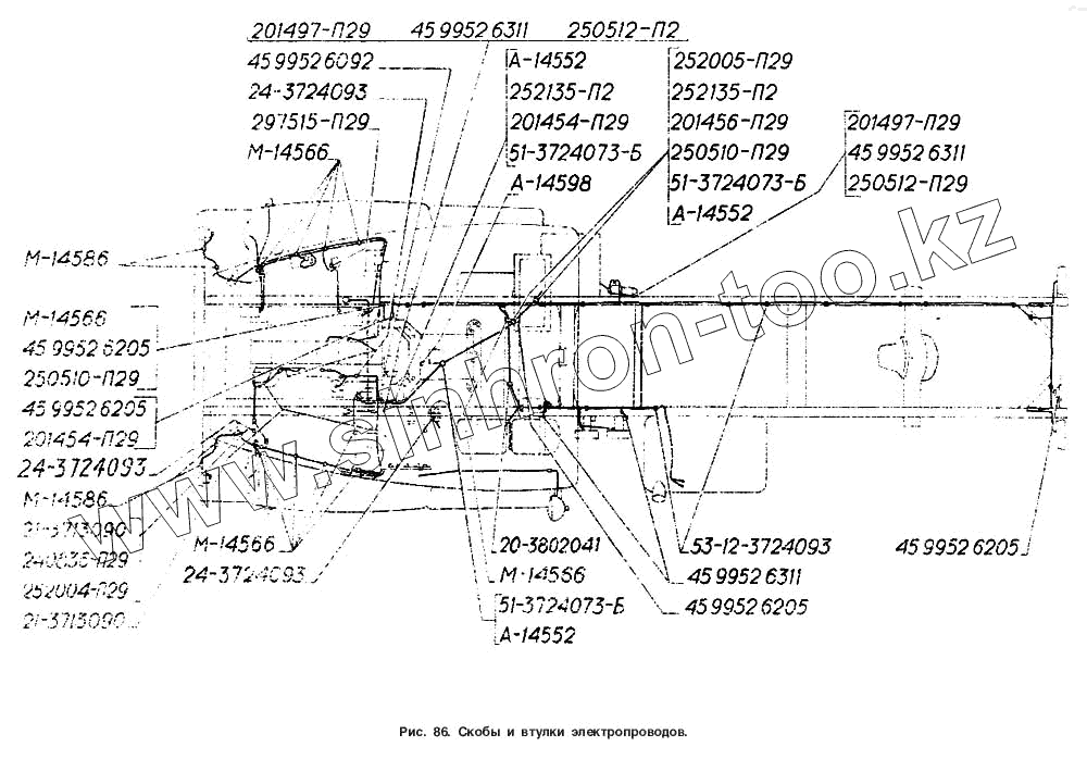 Каталог запасных частей к технике: ГАЗ-4301. Скобы и втулки электропроводов
