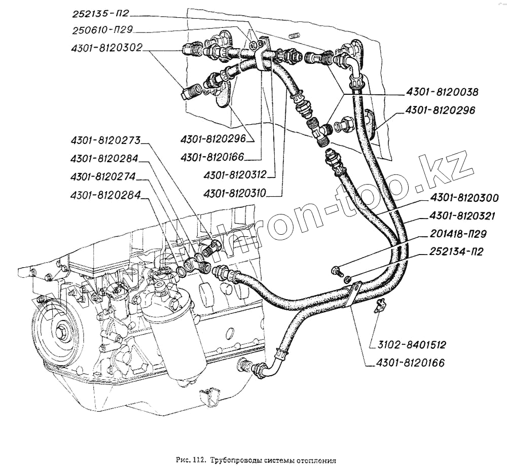 Каталог запасных частей к технике: ГАЗ-4301. Трубопроводы системы отопления