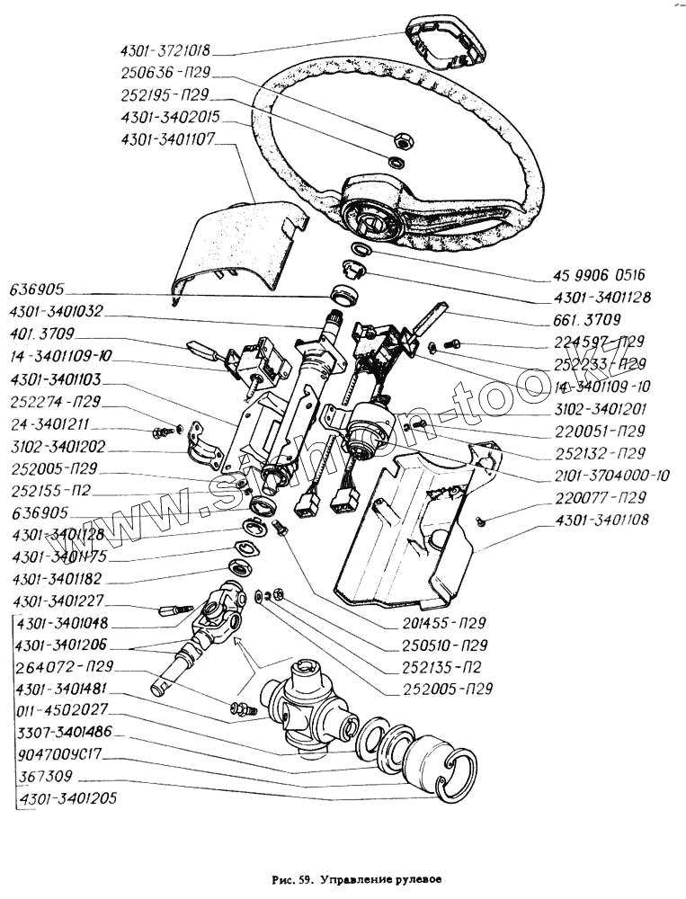 Каталог запасных частей к технике: ГАЗ-4301. Управление рулевое