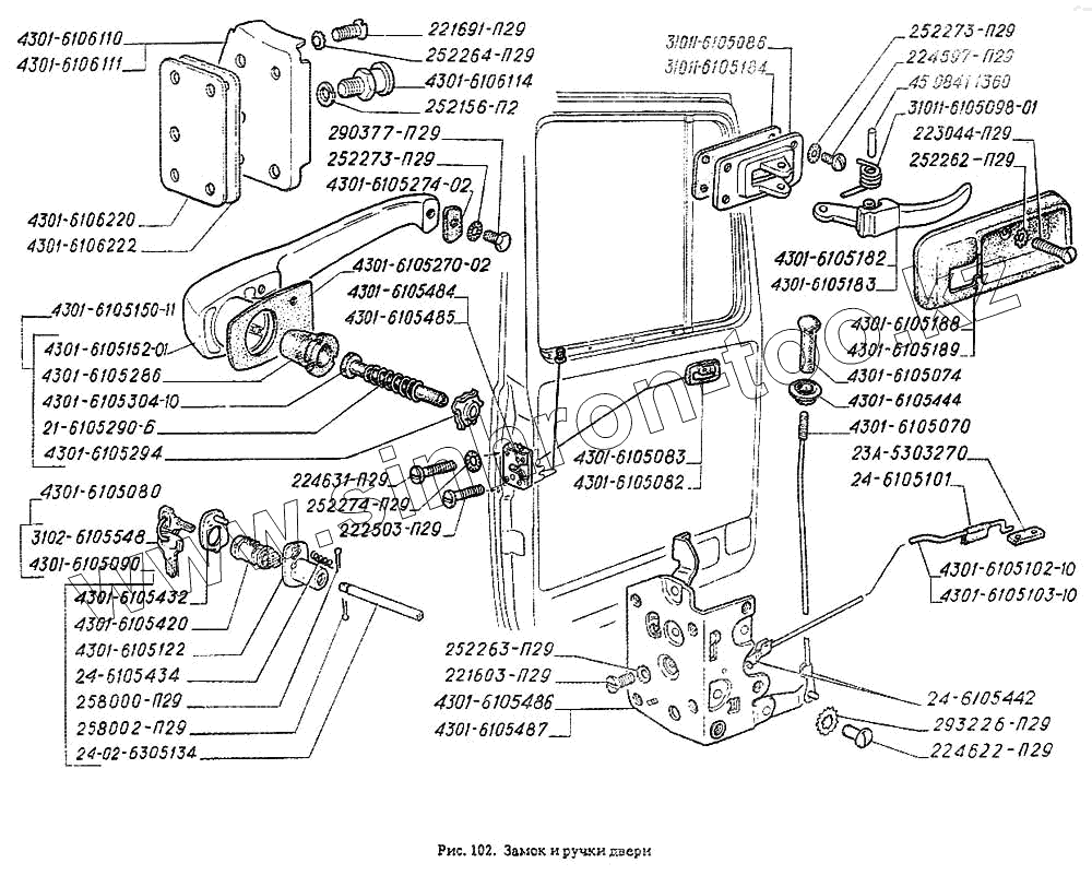 Каталог запасных частей к технике: ГАЗ-4301. Замок и ручки двери