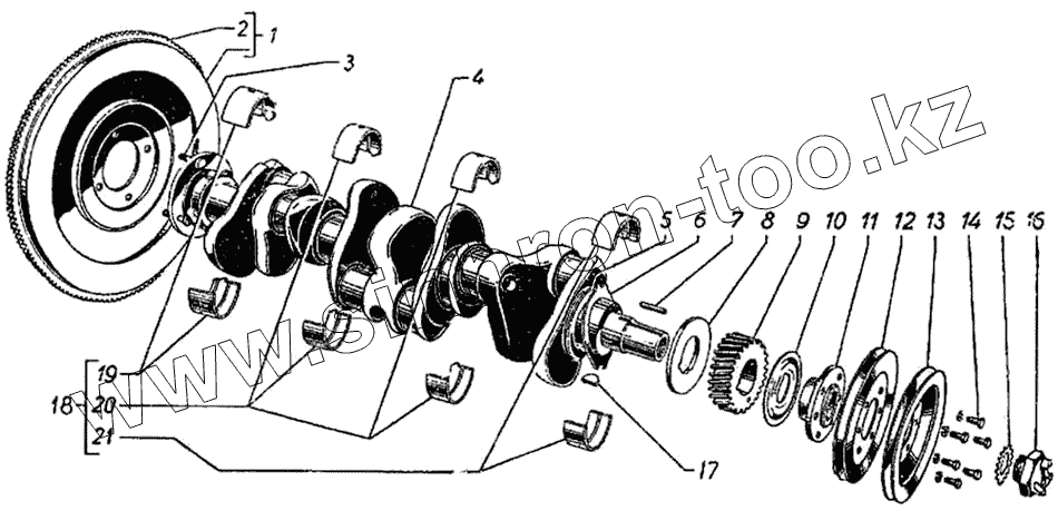Каталог запасных частей к технике: ГАЗ-51 (63, 63А). Коленчатый вал и маховик