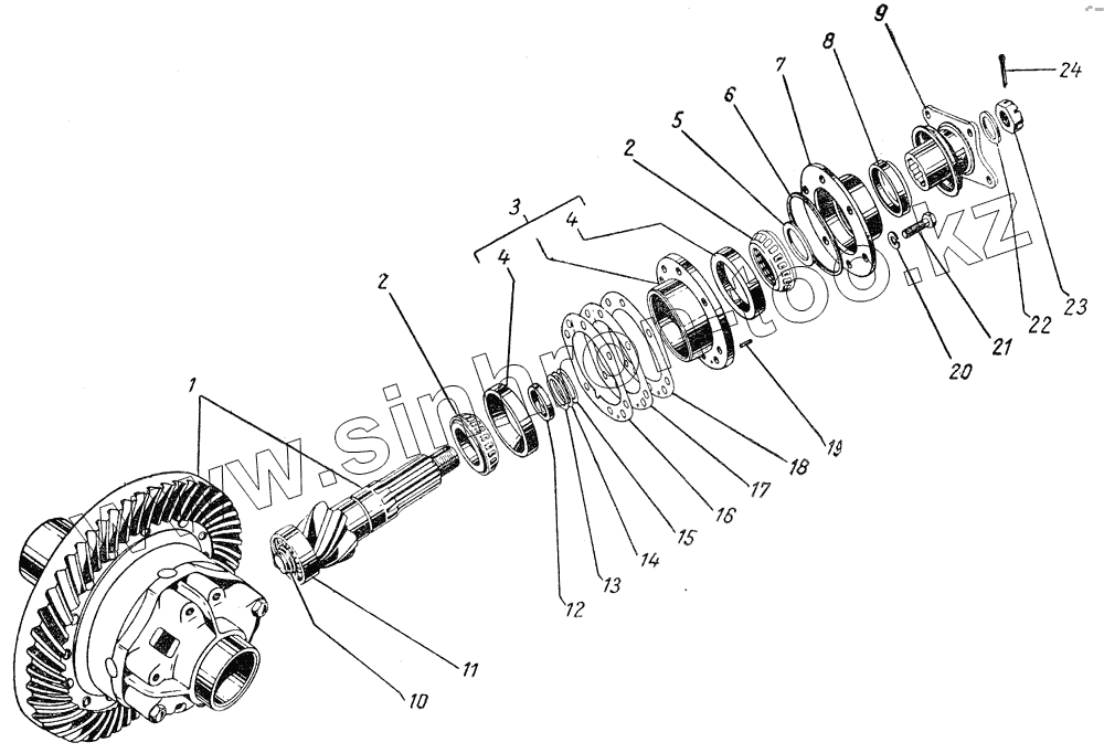 | 2 | 51-2402027 | Кольцо внутреннее и ролики подшипника ведущей шестерни главной передачи заднего моста | |