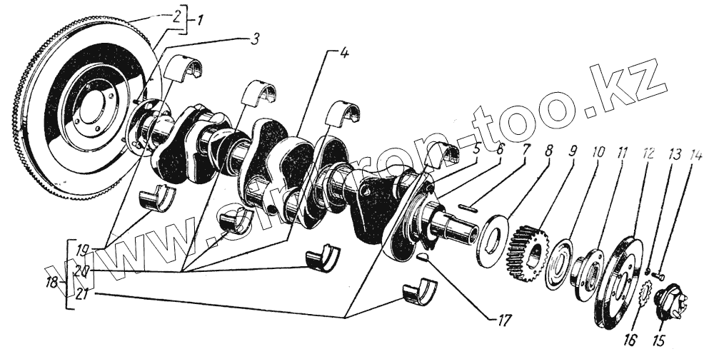 Каталог запасных частей к технике: ГАЗ-51 (63, 93). Коленчатый вал и маховик