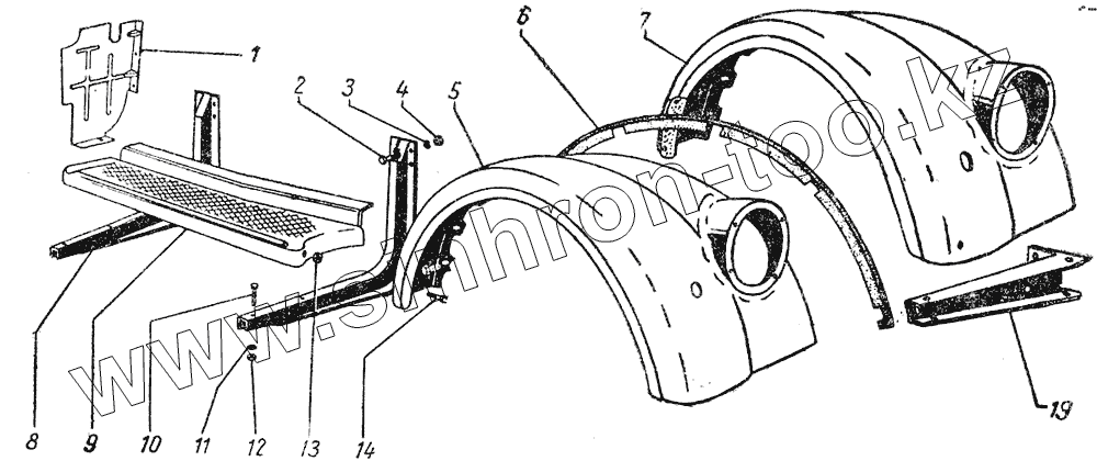 Каталог запасных частей к технике: ГАЗ-51 (63, 93). Переднее крыло, подножка