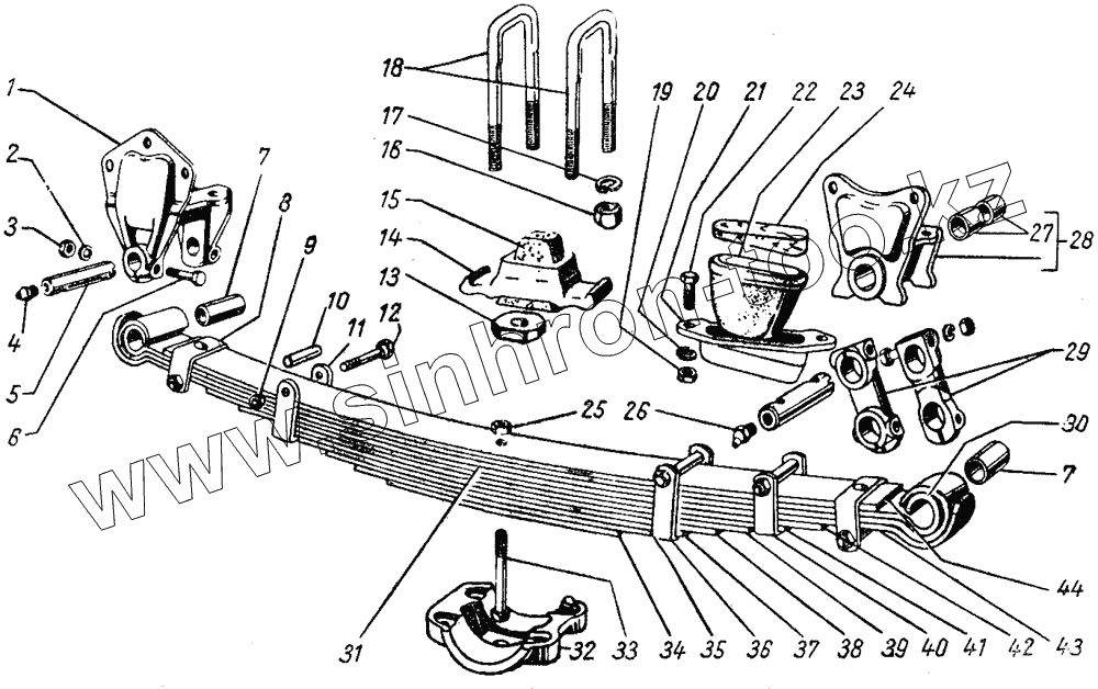 | 44 | 51-2902051-В1 | Лист передней рессоры обратный с хомутами в сборе |