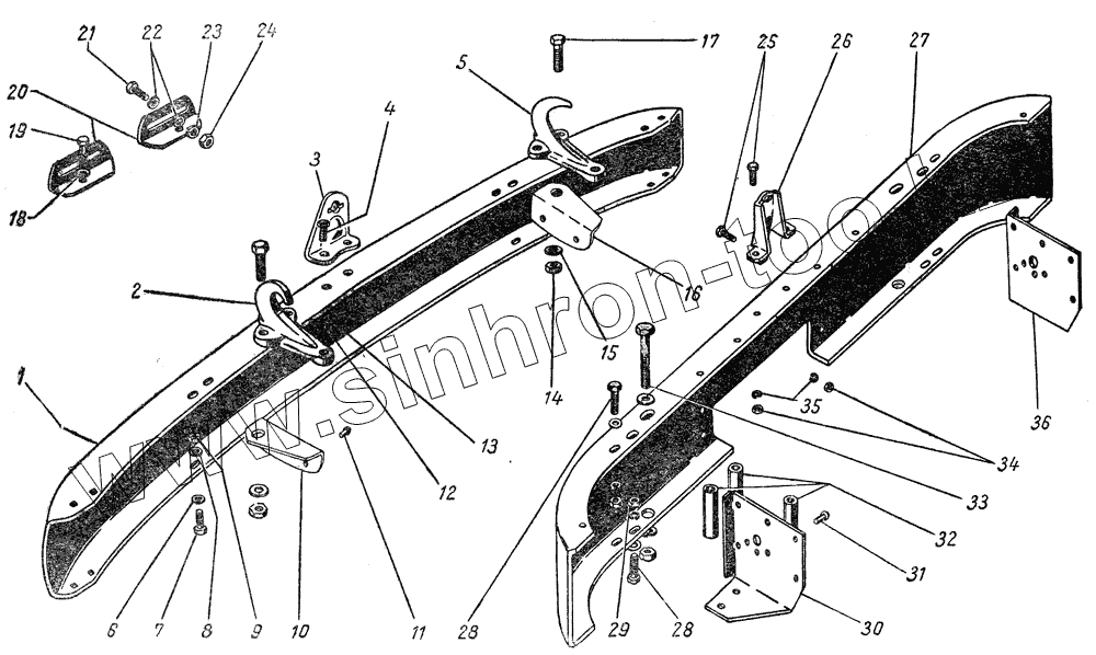 Каталог запасных частей к технике: ГАЗ-51 (63, 93). Передний буфер