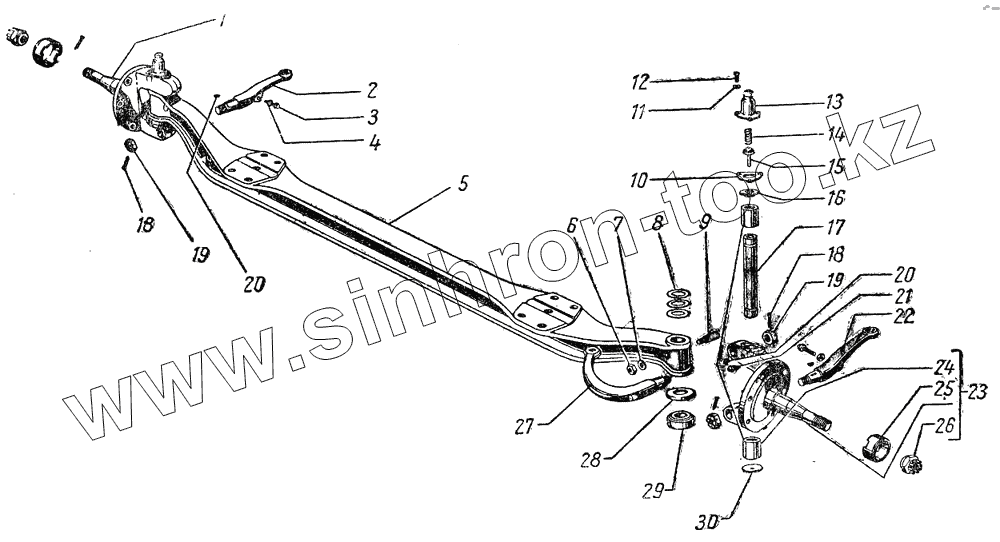 Каталог запасных частей к технике: ГАЗ-51 (63, 93). Передняя ось