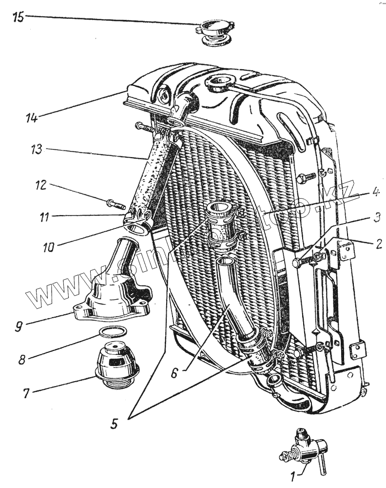 Каталог запасных частей к технике: ГАЗ-51 (63, 93). Радиатор, трубопроводы и шланги