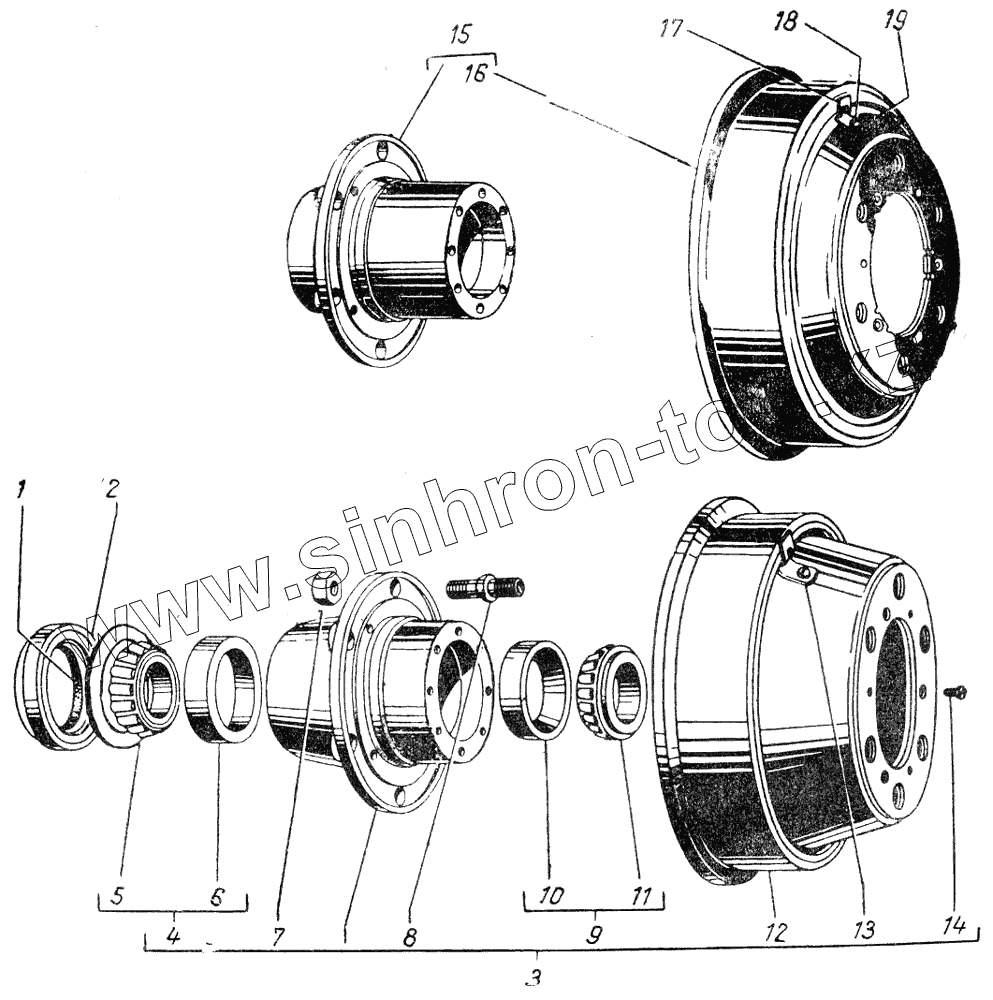 | 15 | ВК-51-3104008 | Ступица и тормозной барабан заднего колеса правые с подшипниками в сборе(для запасных частей) | |