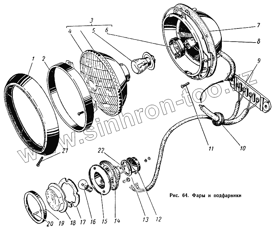 Каталог запасных частей к технике: ГАЗ-52-01. Фары и подфарники