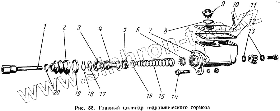 Каталог запасных частей к технике: ГАЗ-52-01. Главный цилиндр гидравлического тормоза