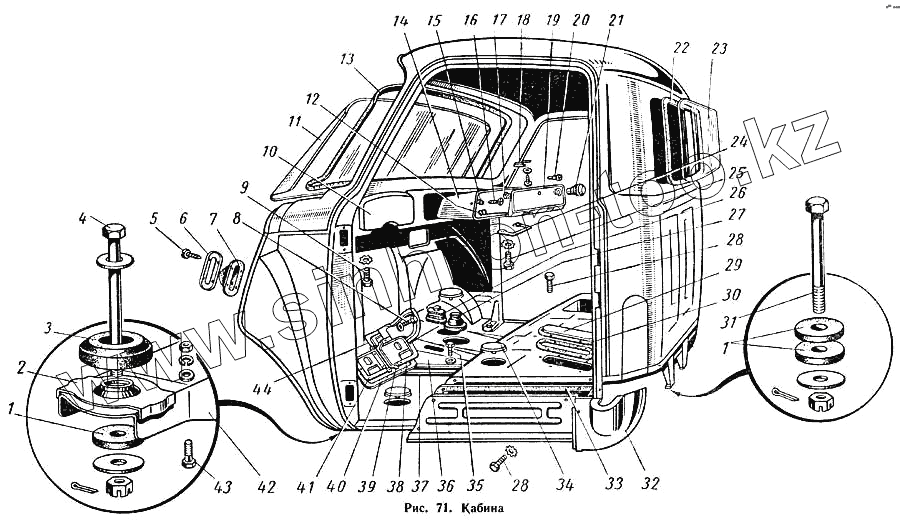 Каталог запасных частей к технике: ГАЗ-52-01. Кабина