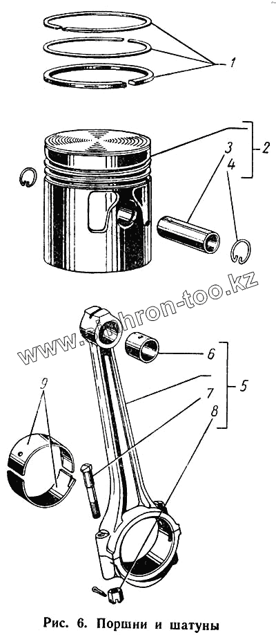Каталог запасных частей к технике: ГАЗ-52-01. Поршни и шатуны