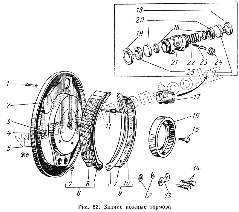 Каталог запасных частей к технике: ГАЗ-52-01. Задние ножные тормоза