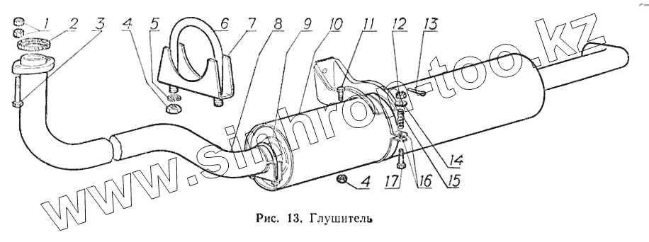Каталог запасных частей к технике: ГАЗ-52-02. Глушитель