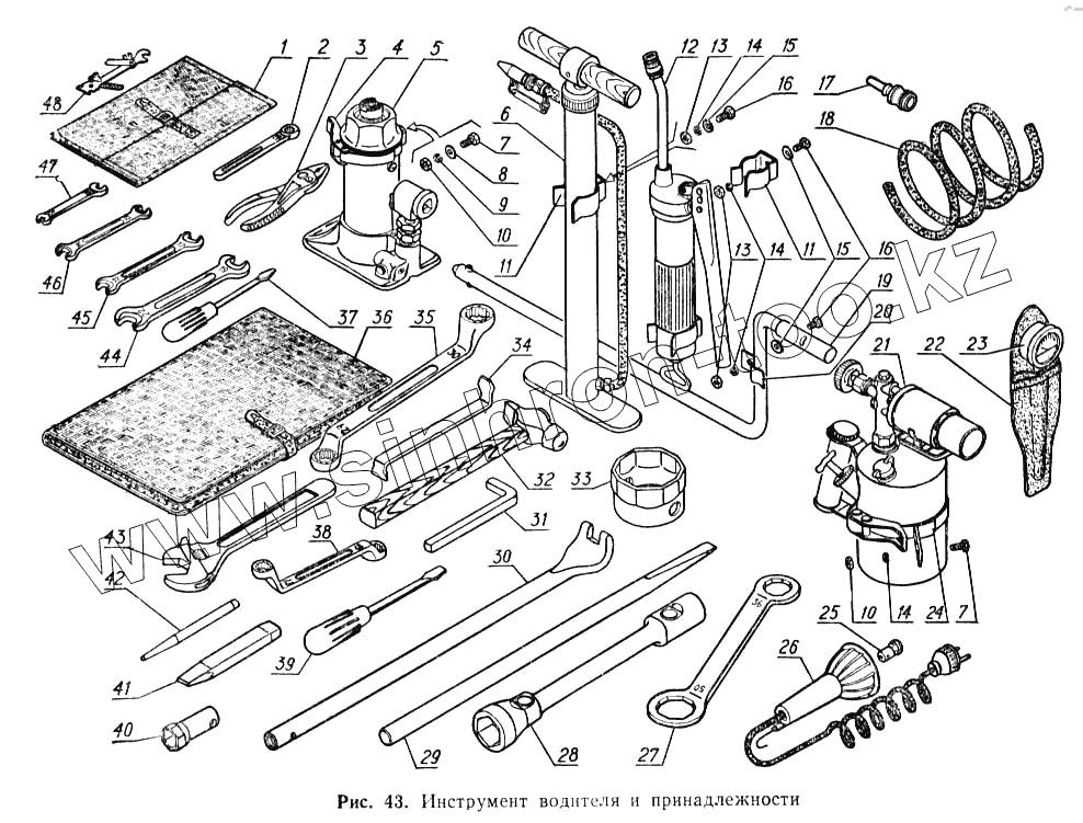 Каталог запасных частей к технике: ГАЗ-52-02. Инструмент водителя и принадлежности