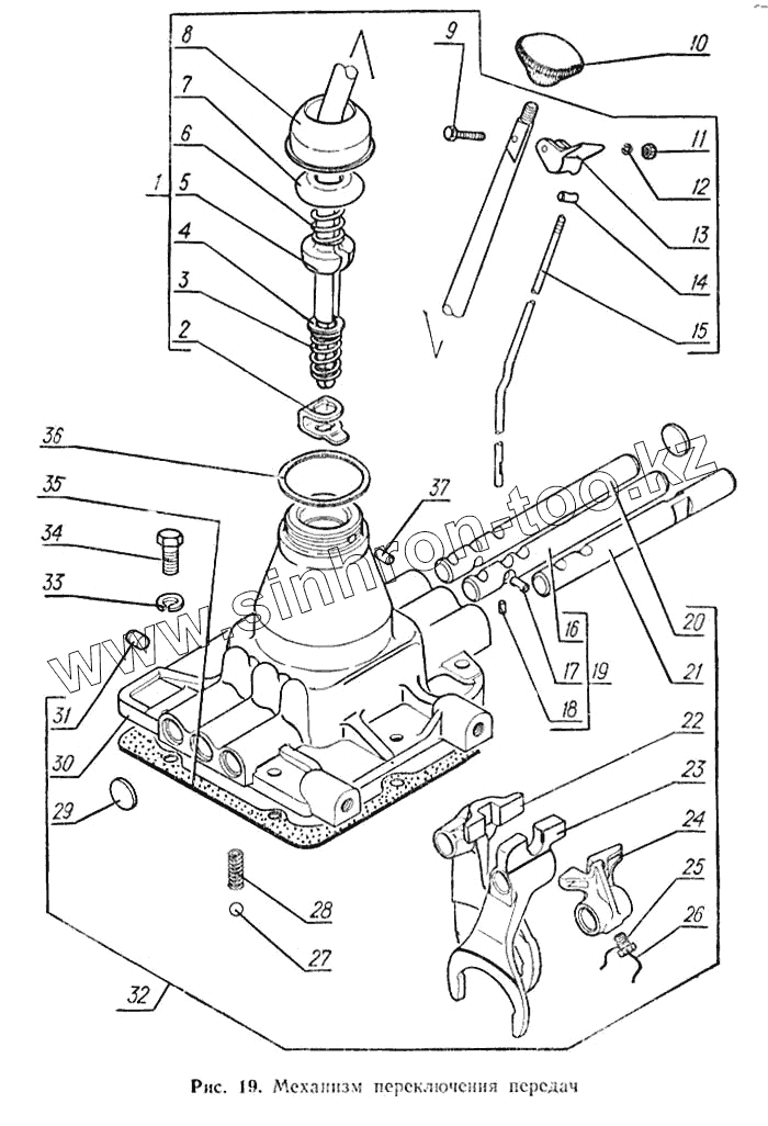 Каталог запасных частей к технике: ГАЗ-52-02. Механизм переключения передач