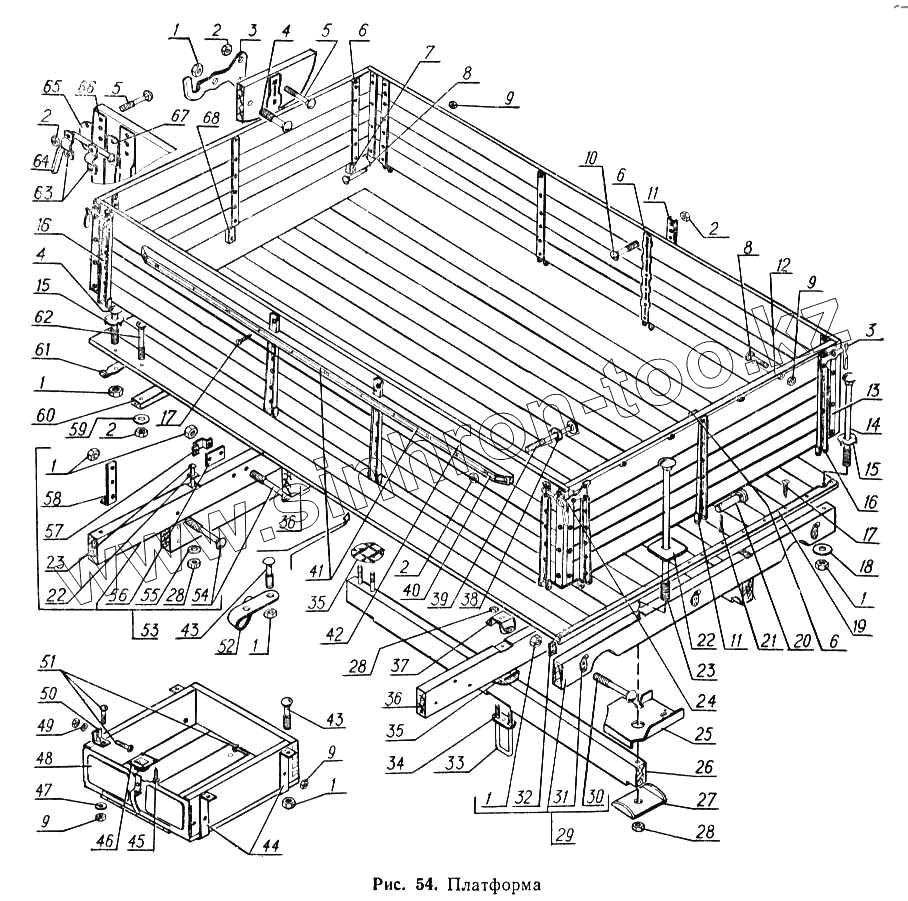 Каталог запасных частей к технике: ГАЗ-52-02. Платформа