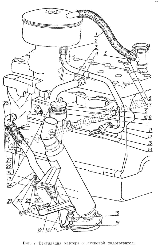 Каталог запасных частей к технике: ГАЗ-52-02. Вентиляция картера и пусковой подогреватель