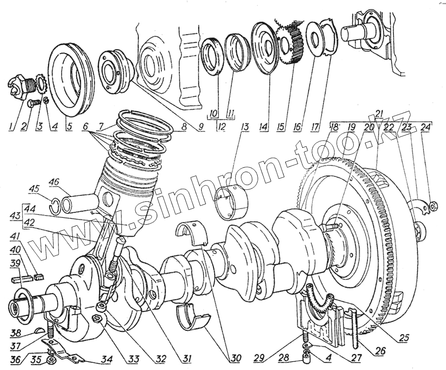 | 21 | 53-1005010-14 | Вал коленчатый с маховиком и сцеплением | |