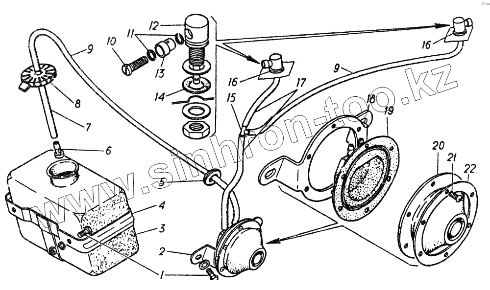 Каталог запасных частей к технике: ГАЗ-5312. Насос водяной очистки ветрового стекла (смыватель)