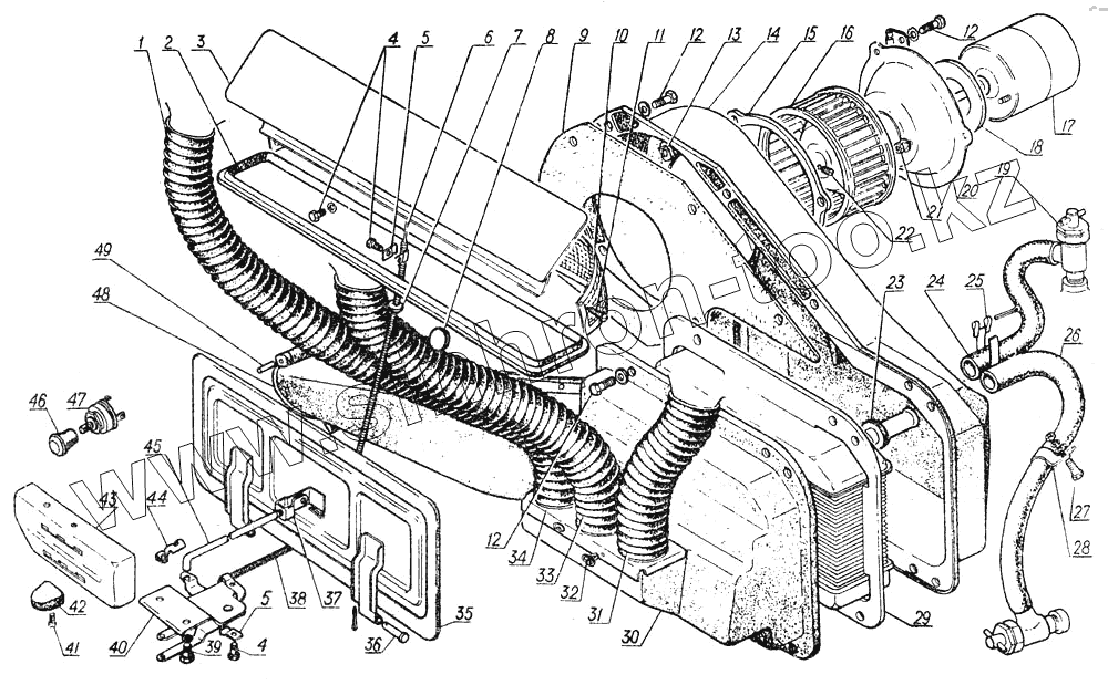 Каталог запасных частей к технике: ГАЗ-5312. Вентиляция и отопление