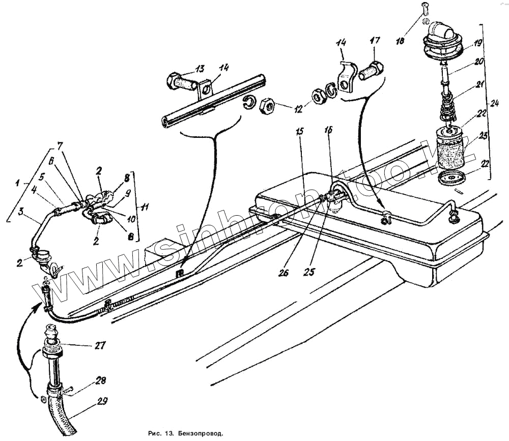 Каталог запасных частей к технике: ГАЗ-53 А. Бензопровод