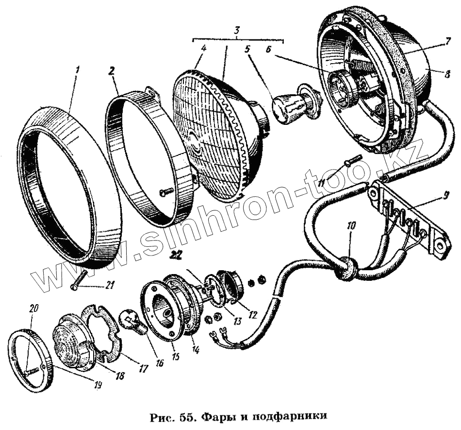 Каталог запасных частей к технике: ГАЗ-53 А. Фары и подфарники